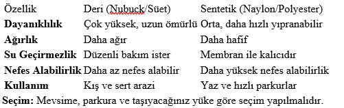 - İç Yapı: Ayağı sıkıca ve boşluk bırakmadan saran, dil ve boğaz kısmında yeterli dolguya sahip modeller tercih sebebidir.